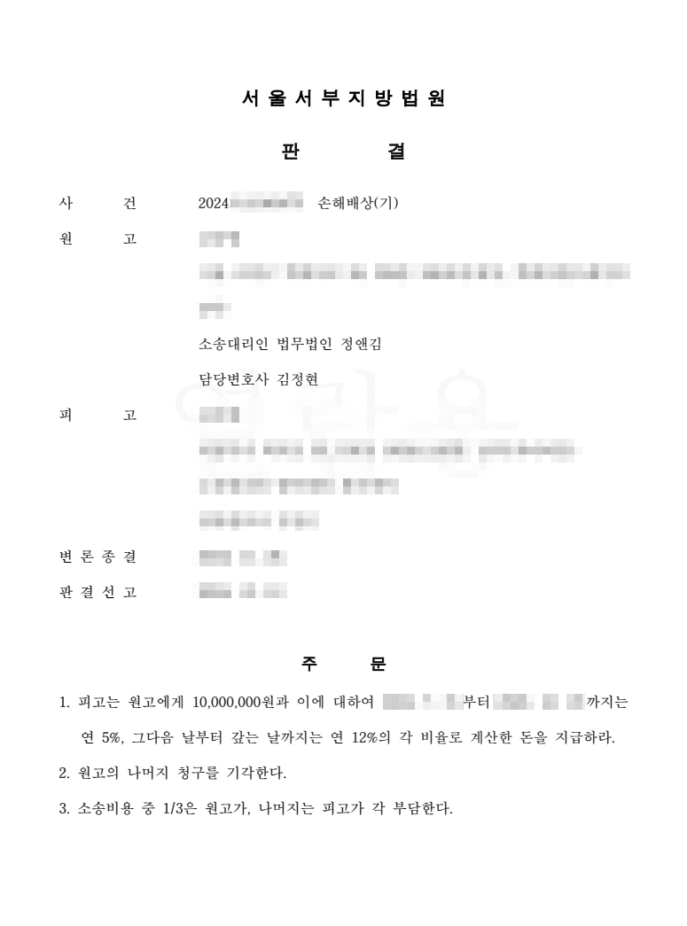 결국 피고가 원고에게 10,000,000원을 지급하고, 소송비용 중 2/3을 부담하는 것으로 판결을 이끌어냈습니다.