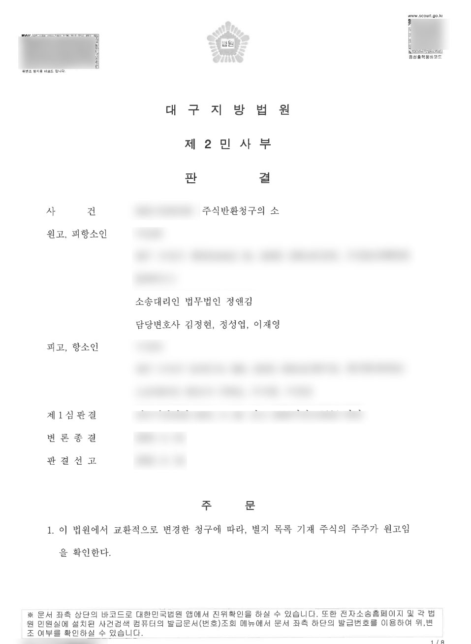 법무법인 정앤김의 김정현, 정성엽 변호사는 원고 측의 변호사로서 사건을 맡아 진행하습니다. 법무법인 정앤김의 김정현, 정성엽 변호사는 원고가 용역을 이행한 결과에 대해 감정신청을 하였고, 용역이 완전하게 이행되었다는 사실을 주장․입증하여 용역비 뿐만 아니라 원고가 주장하는 지연손해금의 7/10을 받아냈습니다.