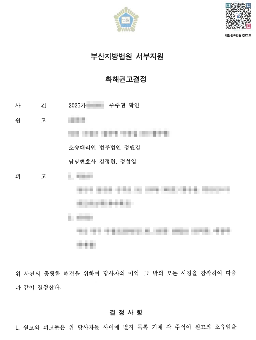 [법무법인 정앤김의 조력]