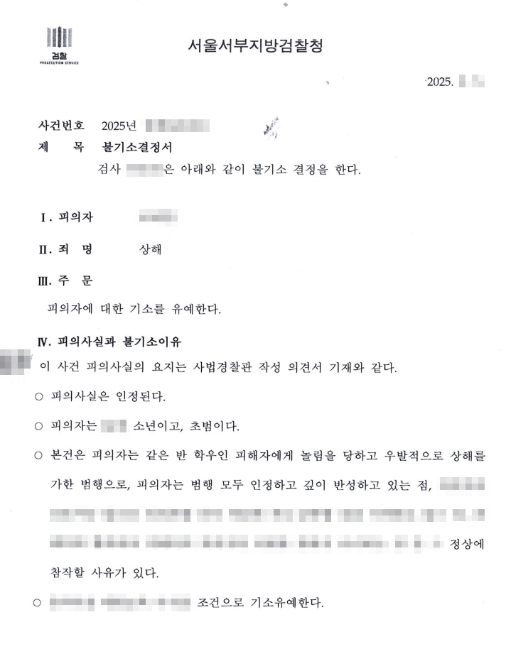 교육이수조건부 기소유예 처분을 받았습니다.