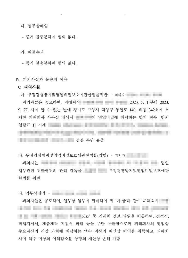 ‘부정경쟁방지 및 영업비밀보호에 관한 법률위반(영업비밀누설 등), 업무상배임, 재물손괴’ 혐의가 동시에 적용되었고,