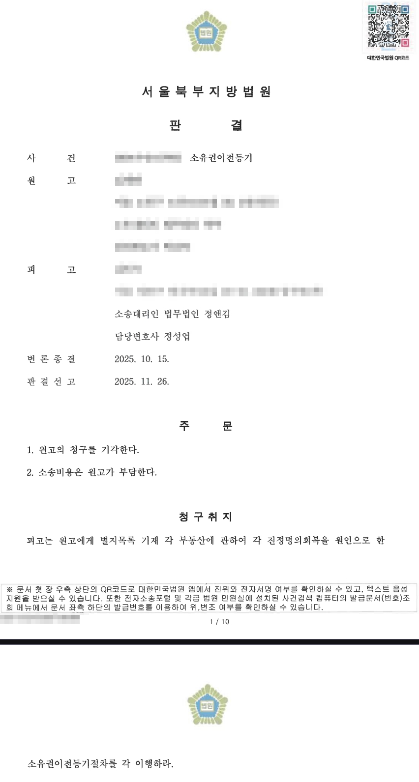 법원 역시 같은 취지로 「원고는 이미 소유권을 상실했으므로 현재 부동산에 대한 진정명의회복청구는 성립할 수 없다」라고 판단하였습니다.