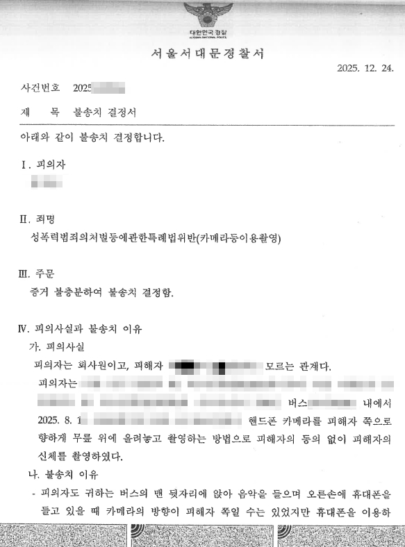의뢰인은 2025. 8. 11. 서울 시내를 운행하는 709번 버스에 탑승했다가, 아이폰 스마트폰으로 성명불상의 승객(피해자)의 신체를 동의 없이 촬영했다는 의심을 받으며 성폭력처벌법상 카메라등이용촬영 혐의로 압수수색을 당하였고, 그 이후 경찰에서 수사를 받게 되었습니다.