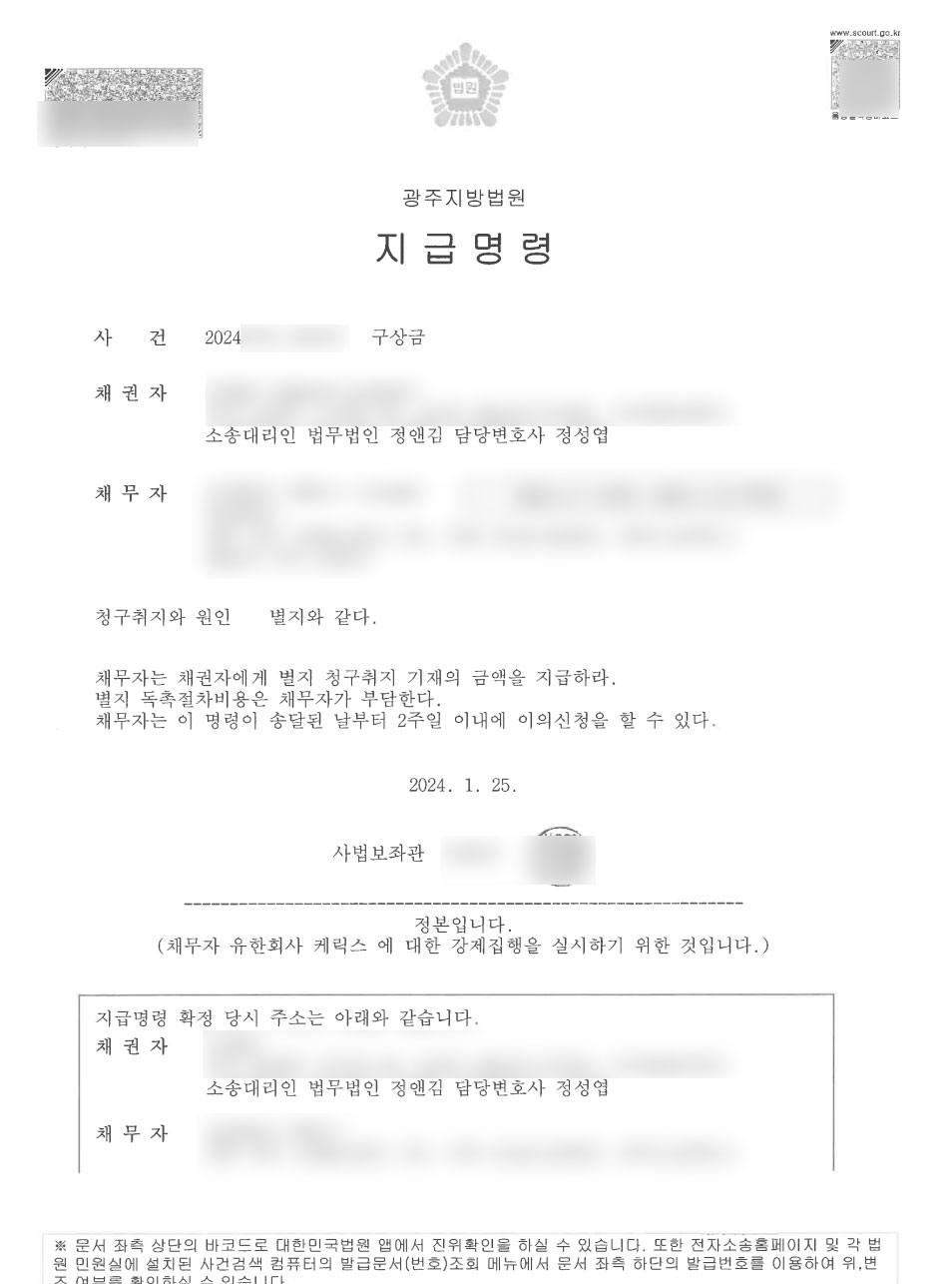 회사의 배후에 있는 자가 회사의 법인격을 남용한 경우, 회사는 물론 그 배후자에 대하여도 회사의 행위에 관한 책임을 물을 수 있다는 점 등을 주장하여 지급명령을 신청했고 약 7억 원의 지급명령을 받을 수 있었습니다.