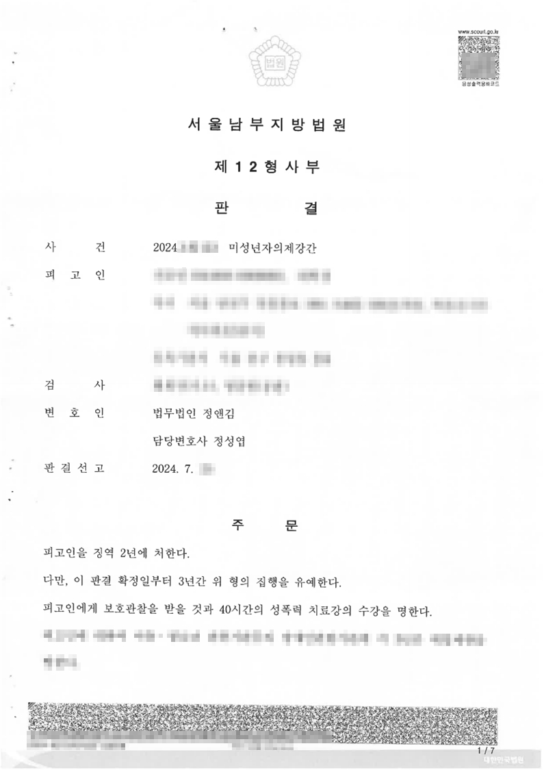 피의자는 성관계 당시 피해자에게 아동·청소년의 성보호에 관한 법률(이하 ‘청소년성보호법’이라고만 합니다) 제7조 제1항에 규정된 폭행 또는 협박, 제7조 제5항에 규정된 위계 또는 위력을 행사하지 않은 점, 피의자는 피해자와 성관계 전에 피해자에게 사귀자는 말을 하였고, 피의자는 이에 동의한 점을 주장 ‧ 입증하여 청소년성보호법이 아닌 미성년자의제강간(형법 제305조 제2항)으로 공소제기되었습니다.
