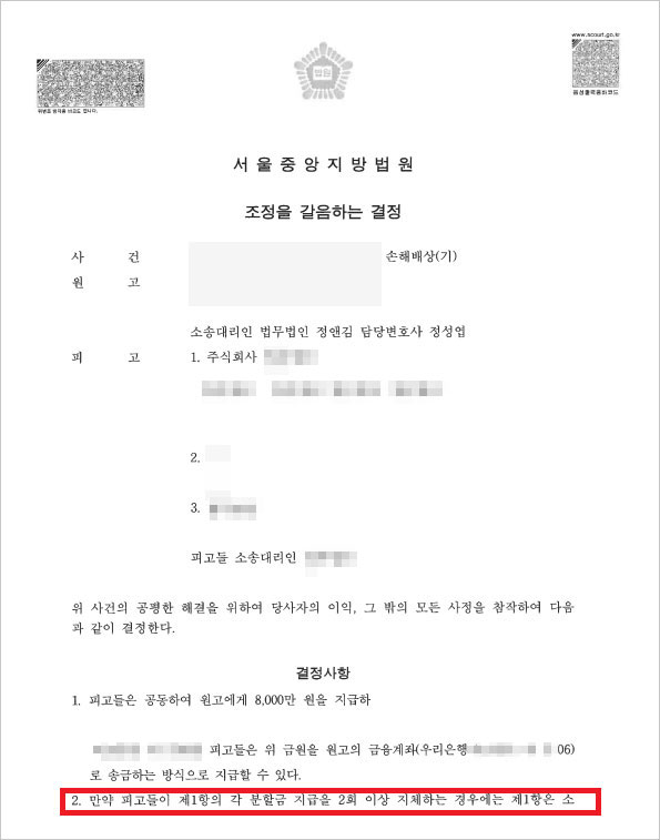 [법무법인 정앤김의 조력]