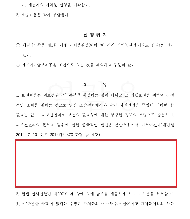 그 후 채무자는 2024. 12. 5. 이 사건 가처분결정에 대해 이의신청하였고, 2024. 12. 27. 가처분이의 사건에서 아래와 같이 담보제공을 조건으로 가처분결정을 취소한다는 결정을 받았습니다.