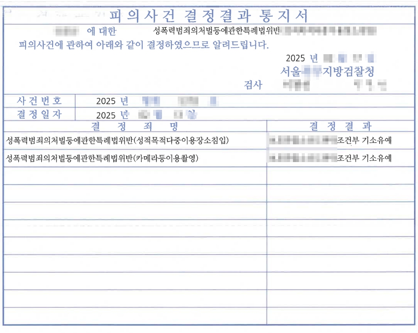 법무법인 정앤김 정성엽, 이재영 변호사는, 경찰과 검찰단계에서 피해자들 여러 명과 합의를 진행하였습니다. 또한, 피의자는 형사처벌 전력이 없는 점, 피의자는 수사관에게 본인의 휴대폰의 비밀번호를 임의제출하여 수사에 협조하도록 노력한 점, 피해자의 얼굴이 보이지 않고 피해자에 대한 영상을 곧바로 삭제한 점, 피의자는 성적 충동이 발생하여 우발적으로 피해자를 촬영한 것이지 계획적으로 촬영하지 않은 점, 특히, 피의자는 반성문 등 여러 가지 양형자료를 제출한 점을 고려하여 선처해 줄 것을 요청하였습니다. 피의자는 검찰에서 조건부 기소유예 처분을 받았습니다.