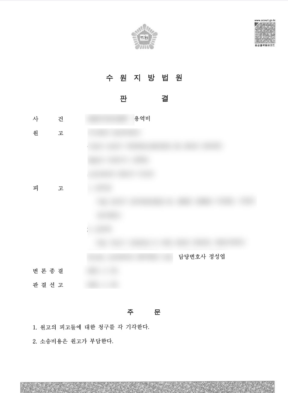 [법무법인 정앤김의 조력]